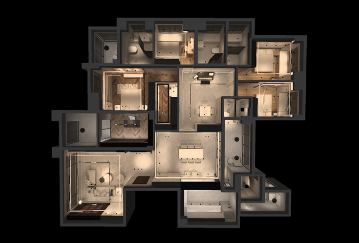 中山龙山华府位于中山小榄,由中山市龙山置业有限公司建成,五室三厅四卫一厨户型面积270m²,业主选择风格为轻奢极简主义,并且选择了全屋智能灯光,在这些条件下,我们古集做出了以下方案,主要使用深度防眩射灯替换主灯,全屋灯光舒适和谐,色温温馨。