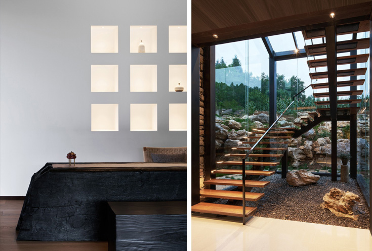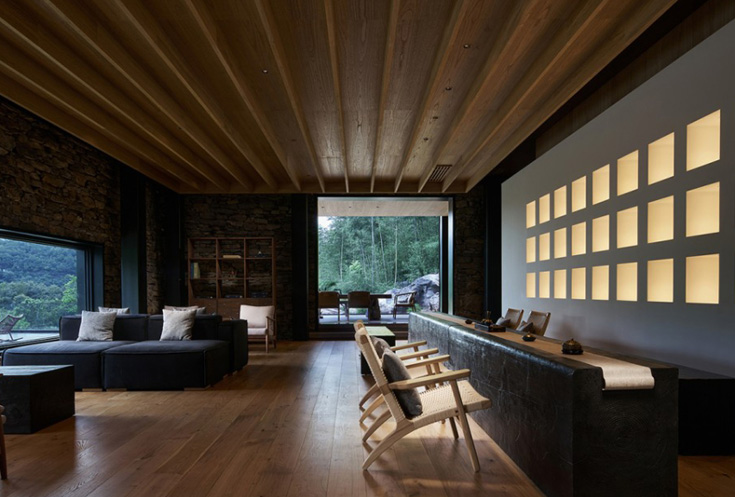 空间对原有木材进行再次利用,结合石墙与钢材,刚柔并济。整体内外塑造更讲究建筑与环境的融合,空间与自然的关系,可视的窗景意为画境。照明设计融合室内设计通过对自然环境和城市文化的艺术化表达,结合当下南昌的生活方式,提取自然和城市元素,通过自然生长的设计手法,融入自然和城市生活片段,延伸出不同的功能空间。