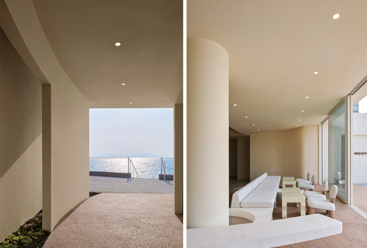 Reef是我们接触到一个非常激动人心的项目,第一次现场实地勘测时团队就被宽阔一览无遗的海景所打动。青岛以其沙滩浴场海洋文化所闻名,位于八大关的太平角一路就是其标志性的观景地之一。Reef就旨在成为一个不受市场设计风格变化的易于维护的咖啡社交场所,为沿岸上漫步的行人以及专程前来的食客提供一个充满魅力的空间。建筑坐落在沿岸堤坝上,需要承受海边潮湿的侵袭和长时间日光照射覆盖。